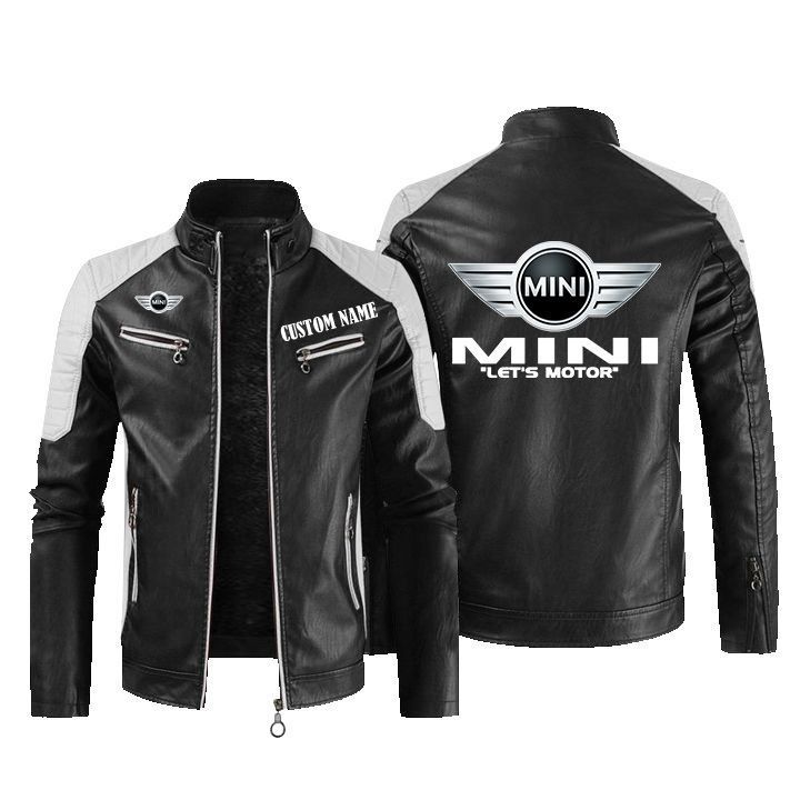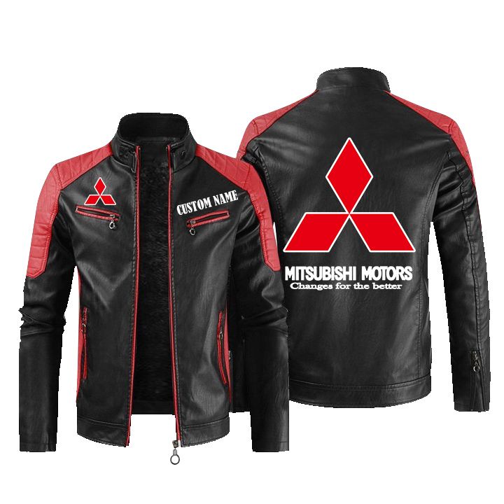 Mitsubishi Golden Logo Leather Biker Jacket Custom Name And Logo