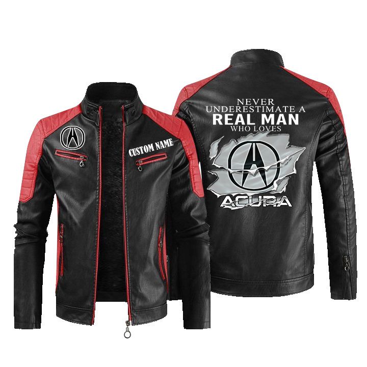Never Underestimate A Real Man Who Loves Acura Leather Biker Jacket