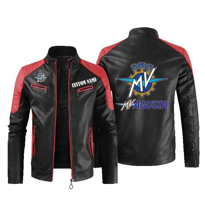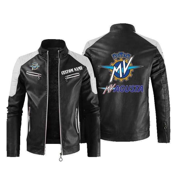 MV Agusta Custom Name Skull Biker Car Driver Personalized Hooded Leather Jacket For Men Women