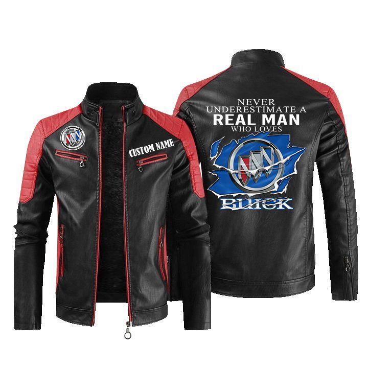 Never Underestimate A Real Man Who Loves Buick Leather Biker Jacket