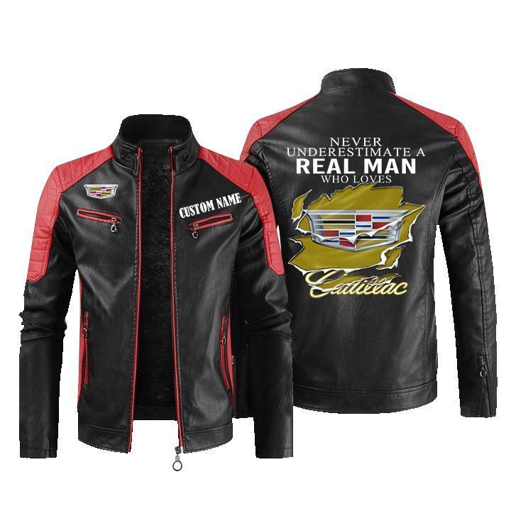 Never Underestimate A Real Man Who Loves Cadillac Leather Biker Jacket