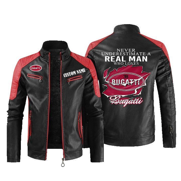 Never Underestimate A Real Man Who Loves Bugatti Leather Biker Jacket