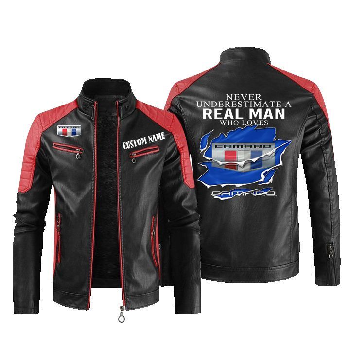 Never Underestimate A Real Man Who Loves Chevrolet Camaro Leather Biker Jacket