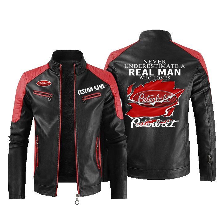 Never Underestimate A Real Man Who Loves Peterbilt Leather Biker Jacket