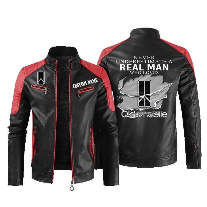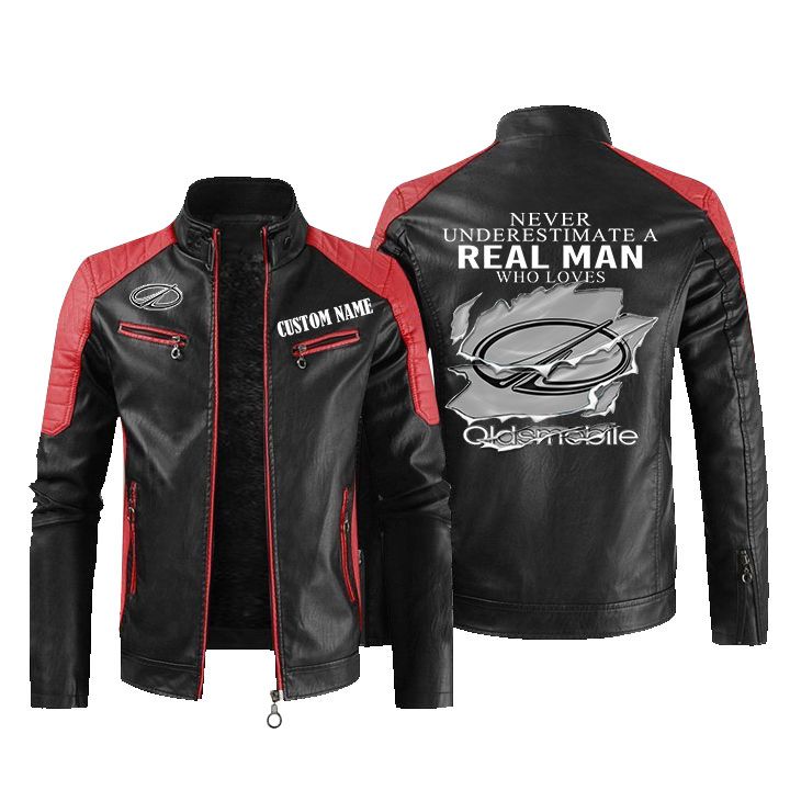 Never Underestimate A Real Man Who Loves Oldsmobile Leather Biker Jacket