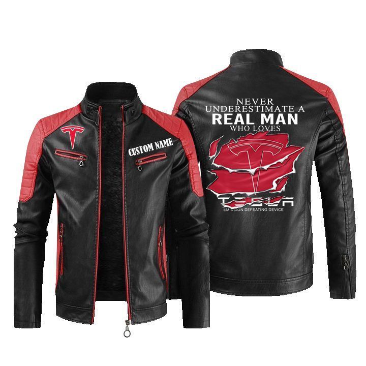 Never Underestimate A Real Man Who Loves Tesla Motors Leather Biker Jacket