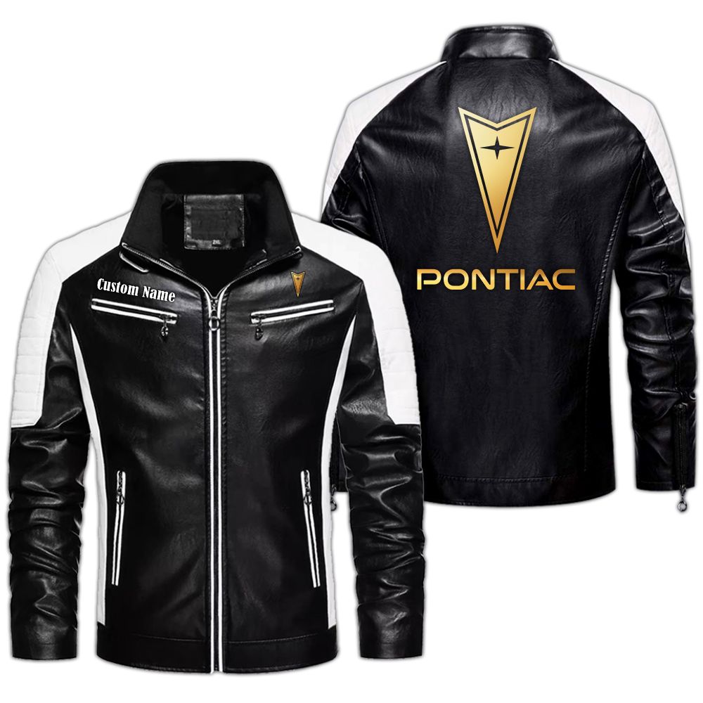 Pontiac Golden Logo Leather Biker Jacket Custom Name And Logo