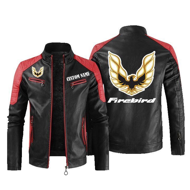 Pontiac Firebird Golden Logo Leather Biker Jacket Custom Name And Logo