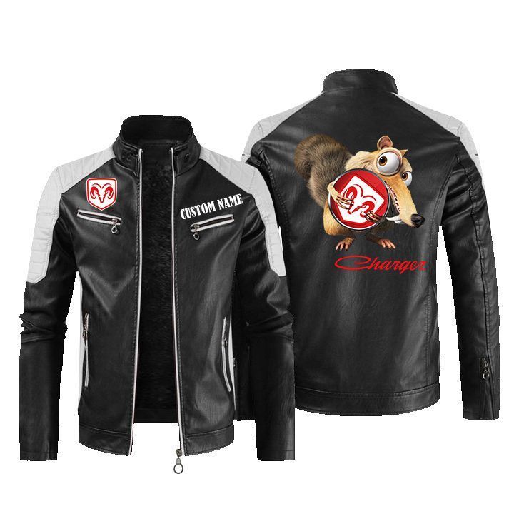 Scrat Squirrel In Ice Age Dodge Charger Leather Biker Jacket