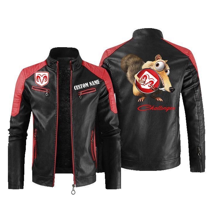 Scrat Squirrel In Ice Age Dodge Challenger Leather Biker Jacket