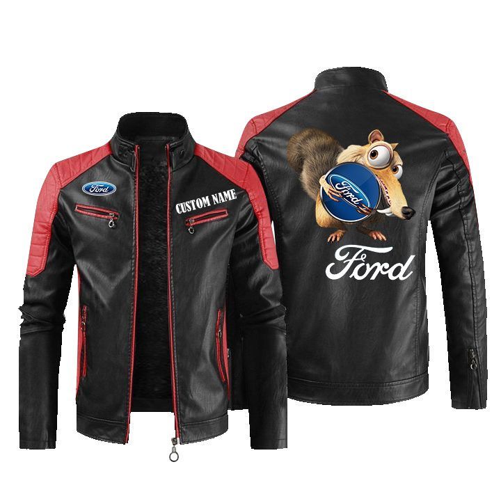 Scrat Squirrel In Ice Age Ford Motor Company Leather Biker Jacket