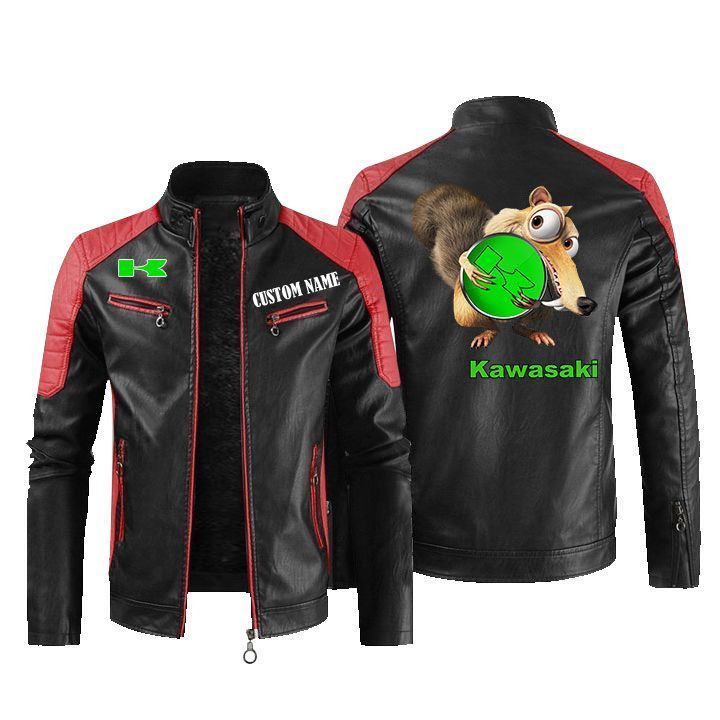 Scrat Squirrel In Ice Age Kawasaki Leather Biker Jacket
