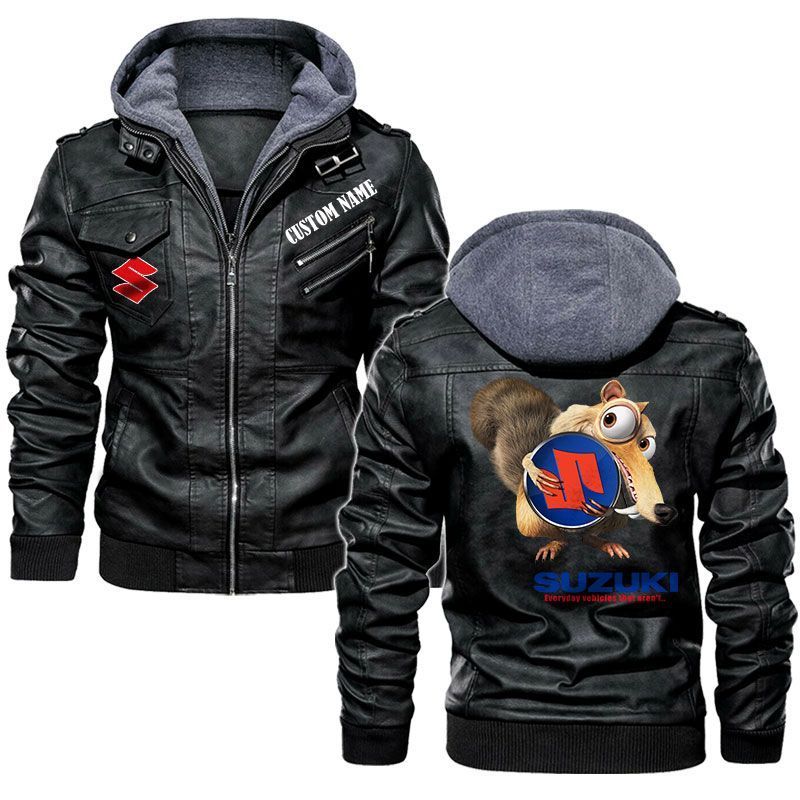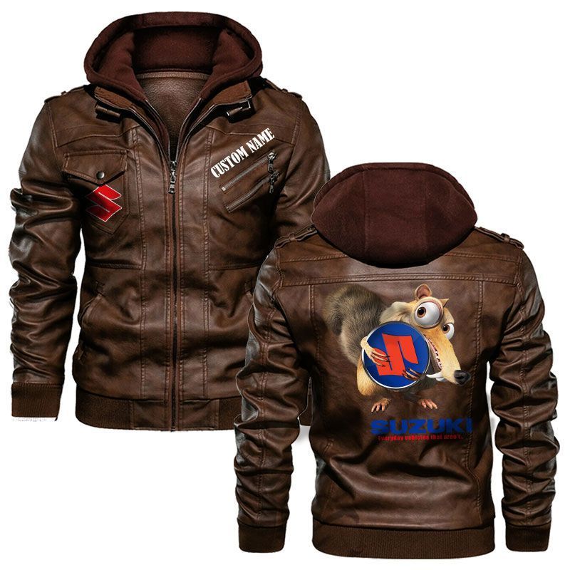 Scrat Squirrel In Ice Age Suzuki Hooded Leather Jacket