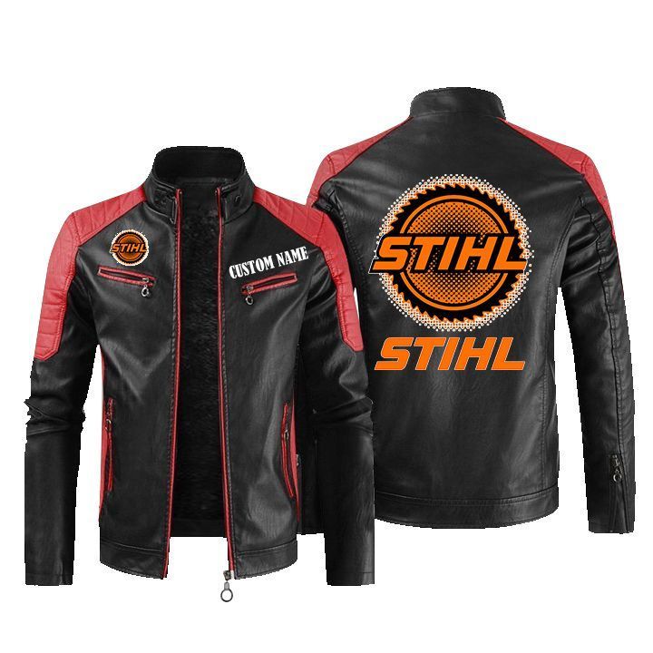 Stihl Custom Name Skull Biker Car Driver Personalized Hooded Leather Jacket For Men Women