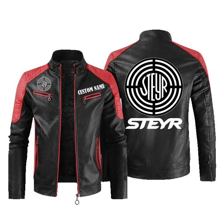 Steyr Tractor Custom Name Skull Biker Car Driver Personalized Hooded Leather Jacket For Men Women
