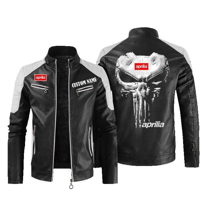 Custom Name Punisher Skull Aprilia Leather Biker Jacket