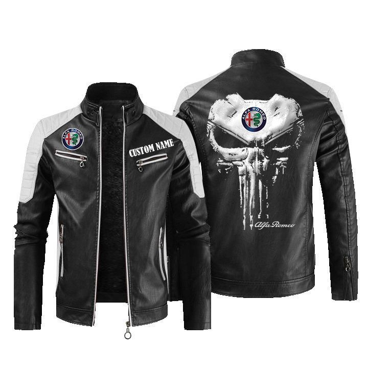 Custom Name Punisher Skull Alfa Romeo Leather Biker Jacket