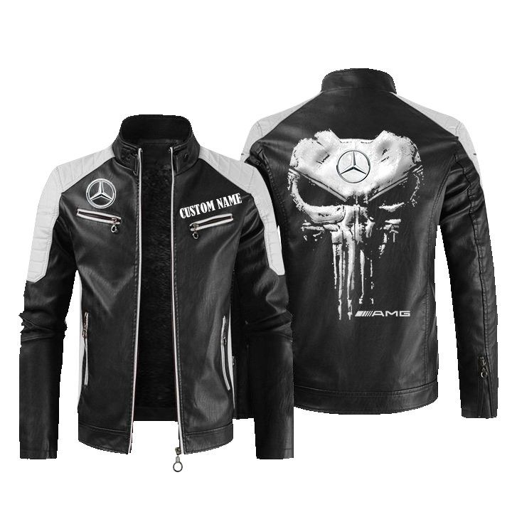 Custom Name Punisher Skull AMG Leather Biker Jacket