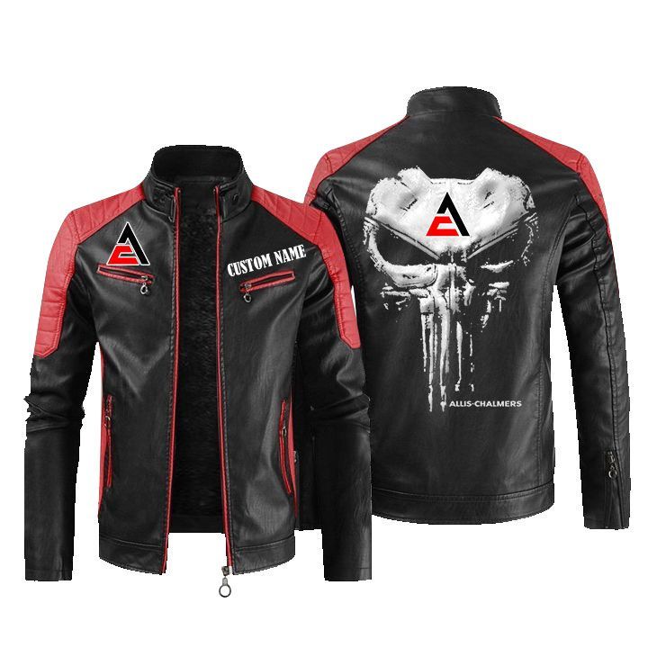 Custom Name Punisher Skull Allis Chalmers Leather Biker Jacket