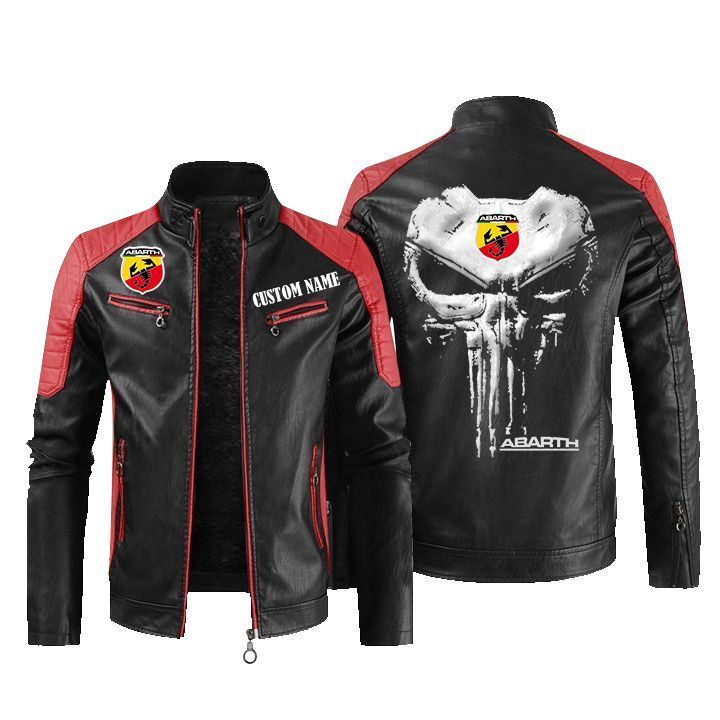 Custom Name Punisher Skull Abarth Leather Biker Jacket