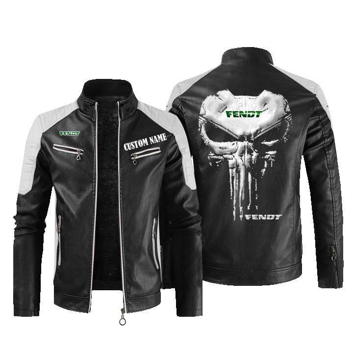 Custom Name Punisher Skull Fendt Leather Biker Jacket