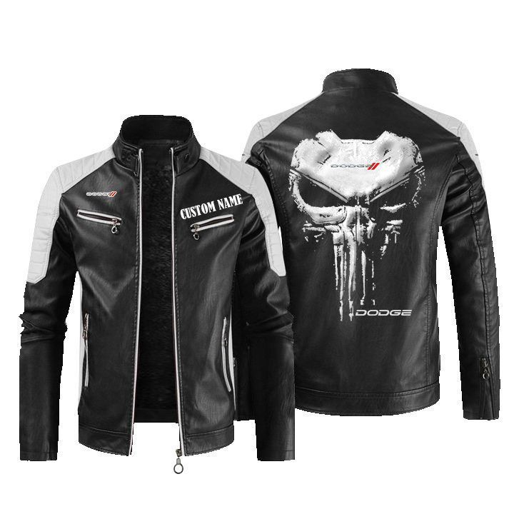Custom Name Punisher Skull Dodge Leather Biker Jacket