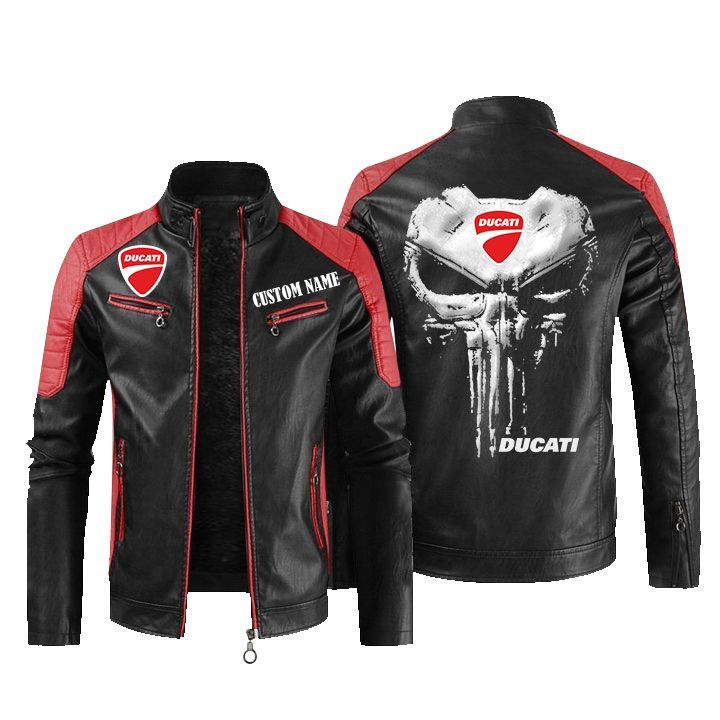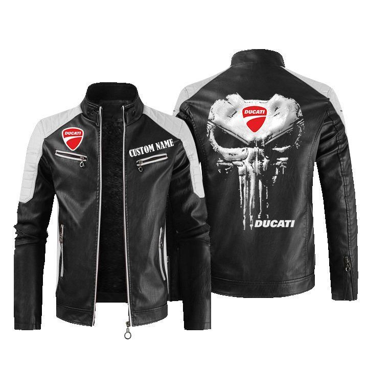 Custom Name Punisher Skull Ducati Leather Biker Jacket
