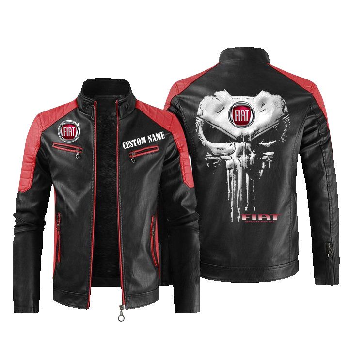 Custom Name Punisher Skull Fiat Leather Biker Jacket