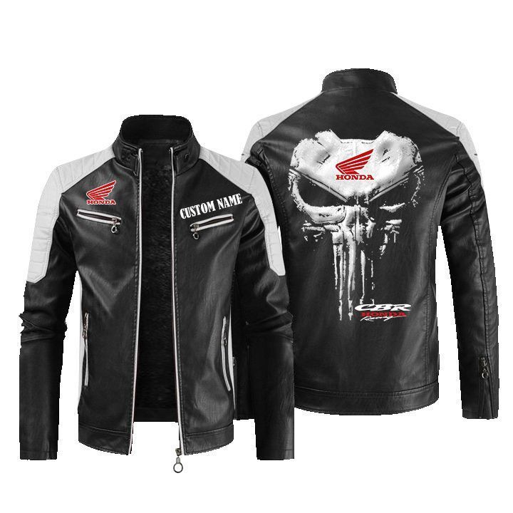 Custom Name Punisher Skull Honda CBR Leather Biker Jacket