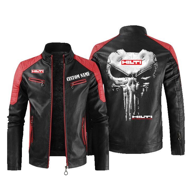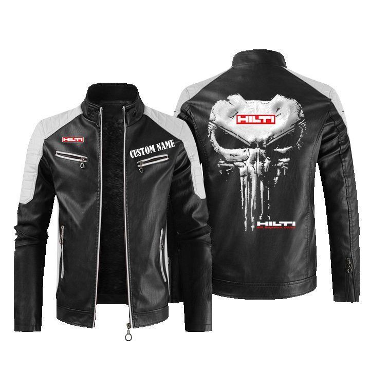 Custom Name Punisher Skull Hilti Leather Biker Jacket