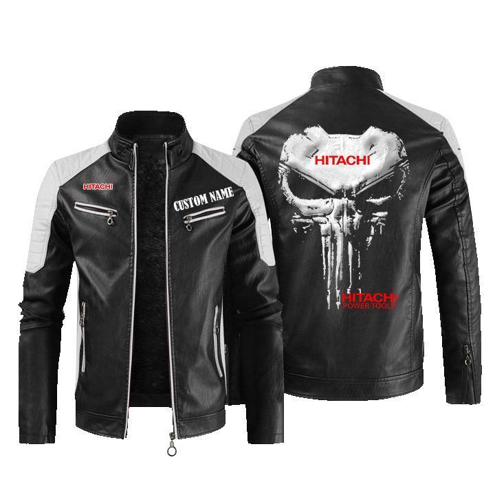 Custom Name Punisher Skull Hitachi Leather Biker Jacket