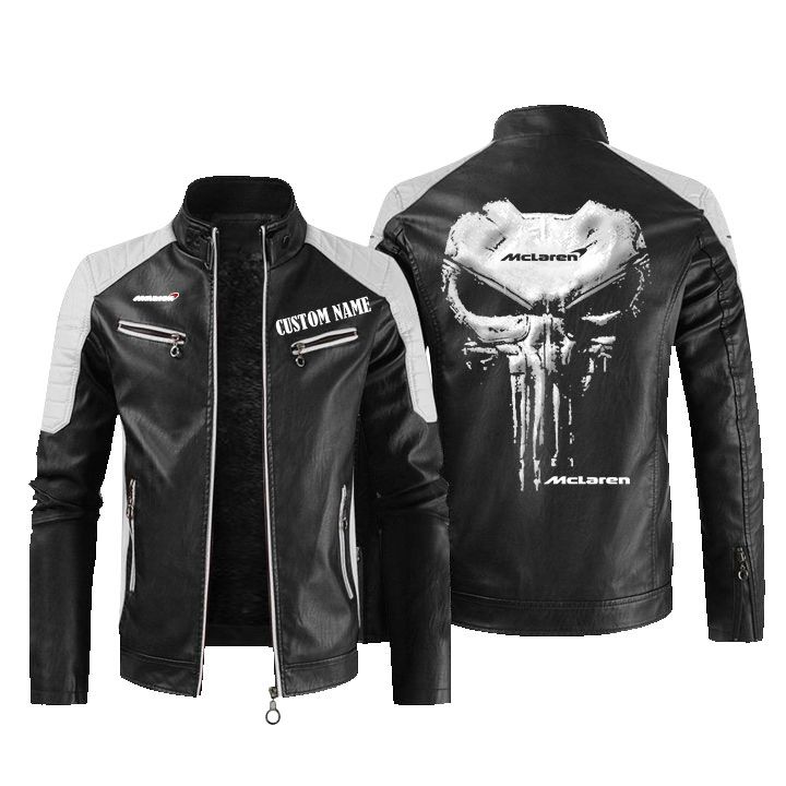 Custom Name Punisher Skull McLaren Automotive Leather Biker Jacket