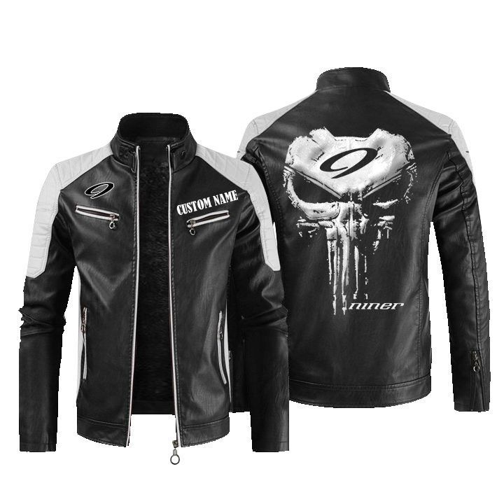 Custom Name Punisher Skull Niner Bikes Leather Biker Jacket