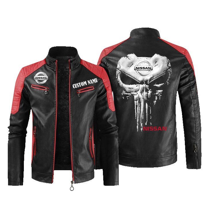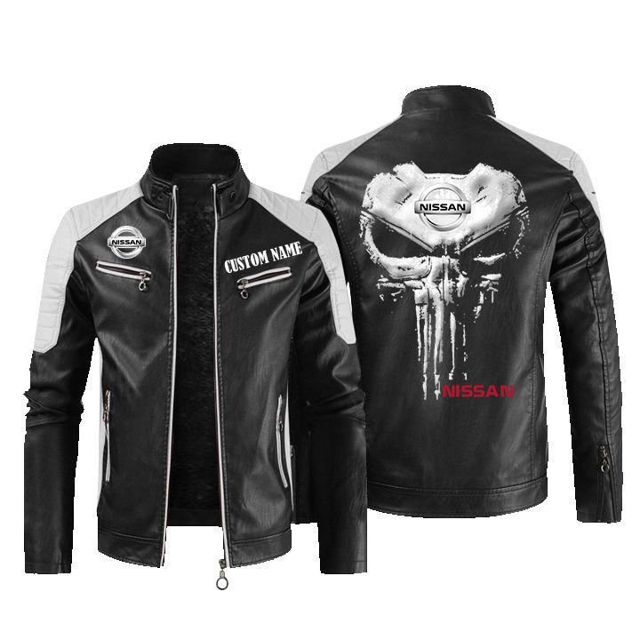 Custom Name Punisher Skull Nissan Leather Biker Jacket