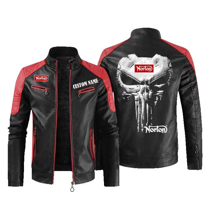 Custom Name Punisher Skull Norton Motorcycle Company Leather Biker Jacket