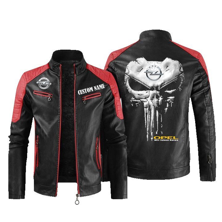 Custom Name Punisher Skull Opel Leather Biker Jacket