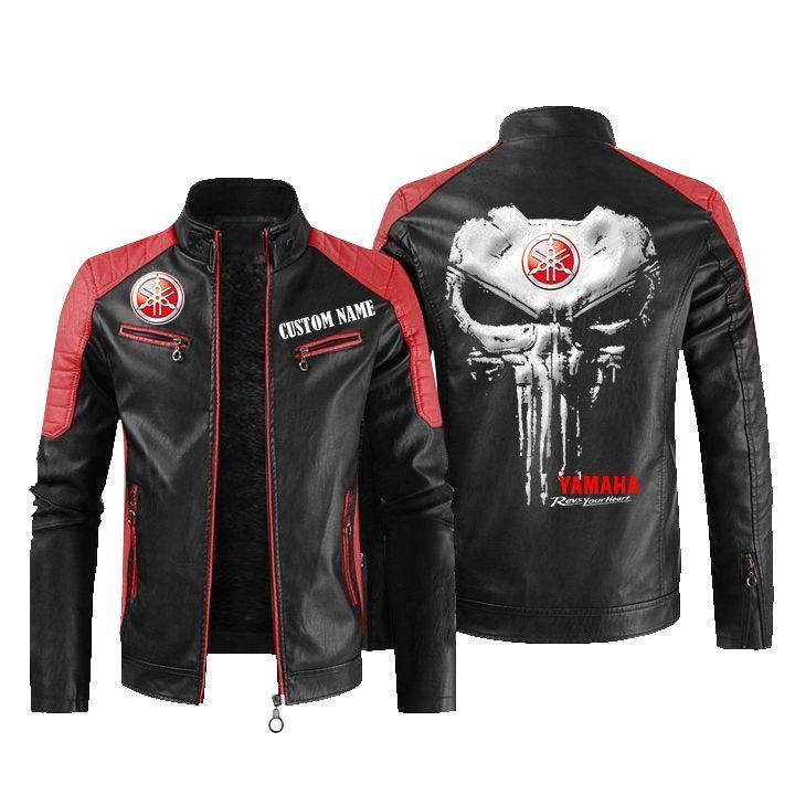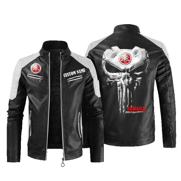 Custom Name Punisher Skull Yamaha Leather Biker Jacket