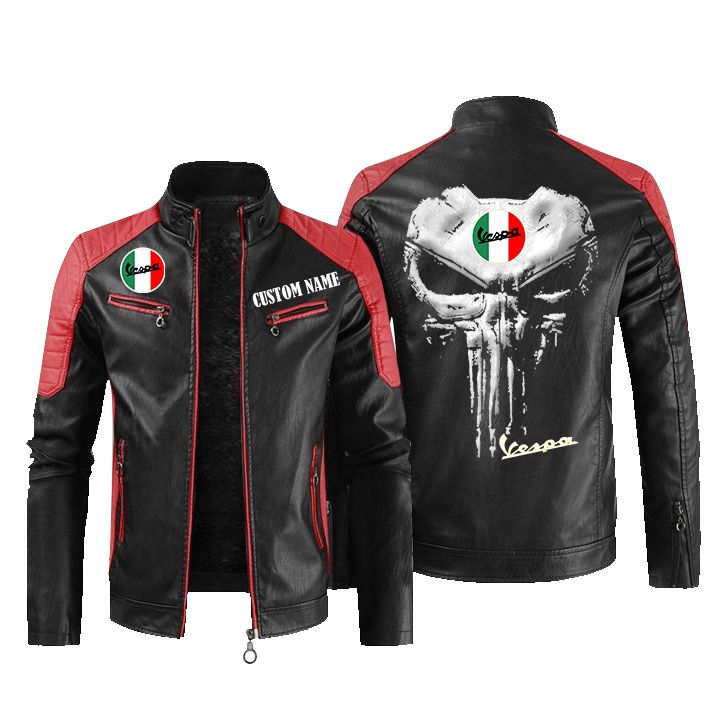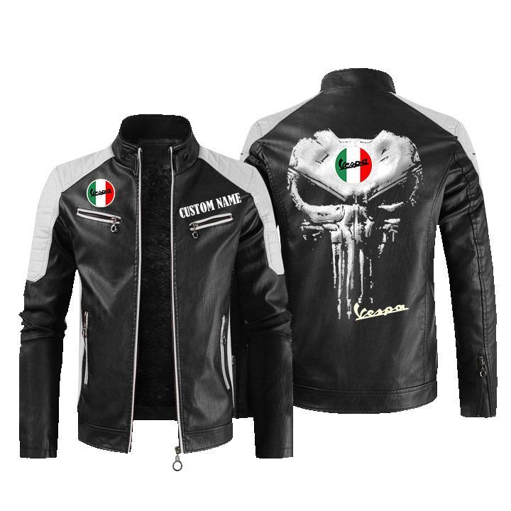 Custom Name Punisher Skull Vespa Leather Biker Jacket