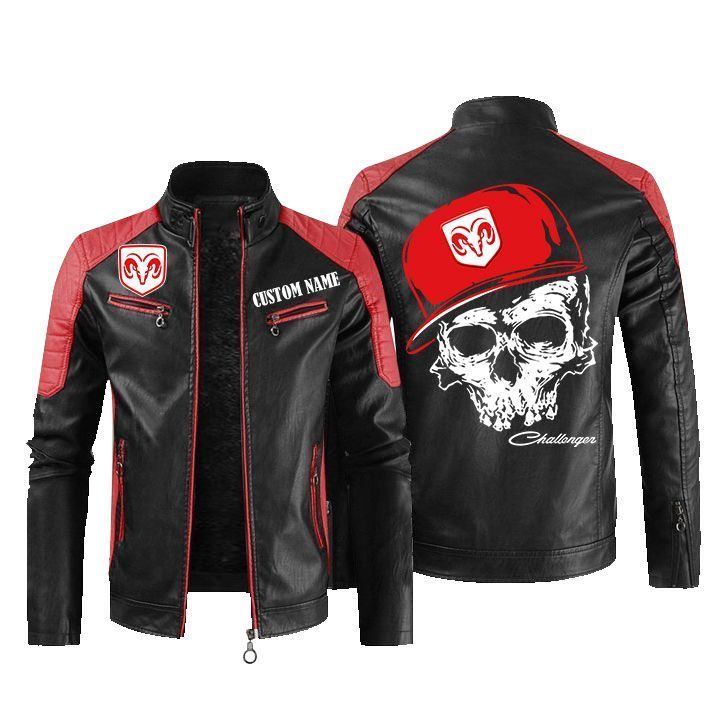 Custom Name Skull Design Dodge Challenger Leather Biker Jacket