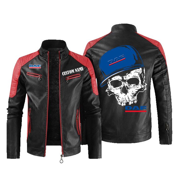 Custom Name Skull Design Daf Hooded Leather Jacket