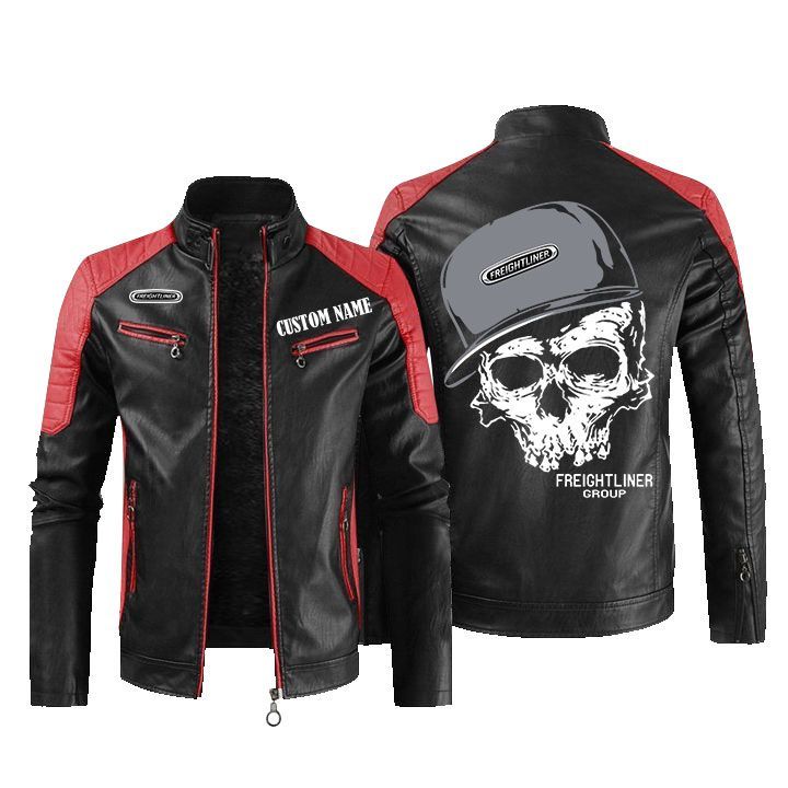 Custom Name Skull Design Freightliner Group Leather Biker Jacket