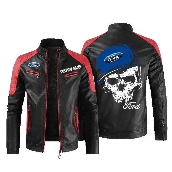 Custom Name Skull Design Ford Motor Company Leather Biker Jacket