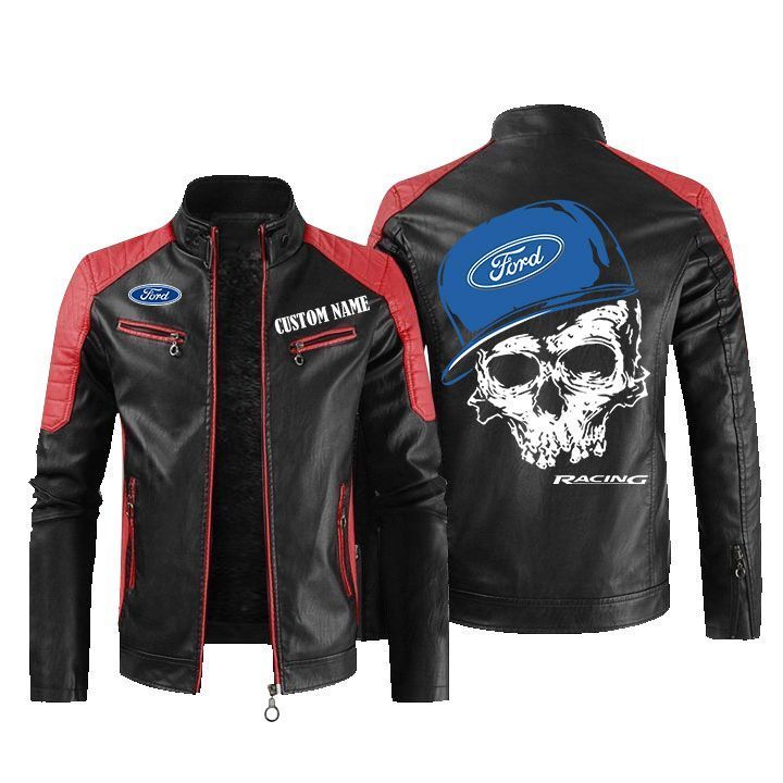 Custom Name Skull Design Ford Racing Leather Biker Jacket