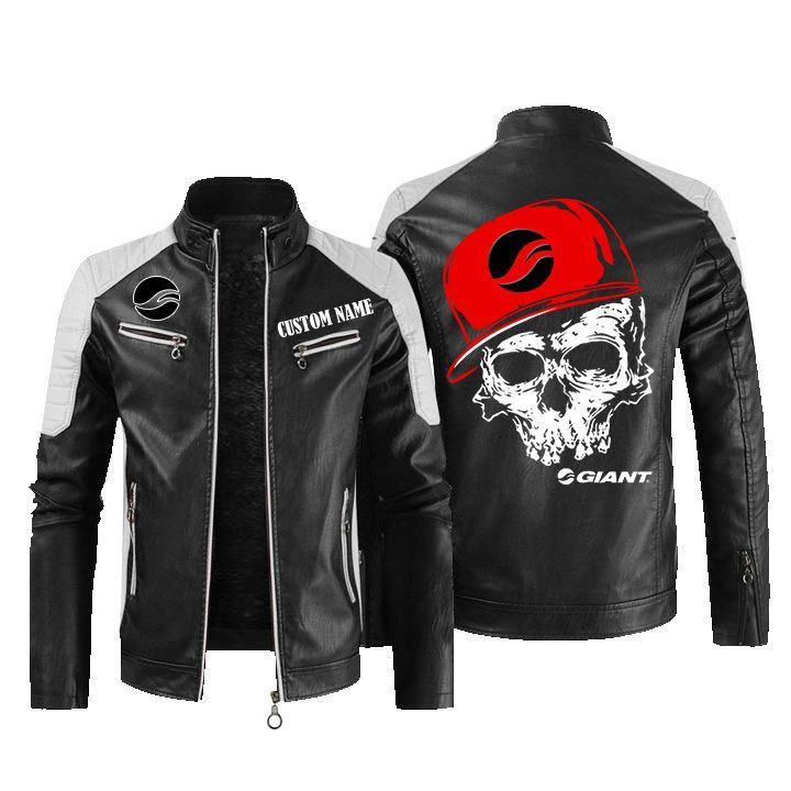 Custom Name Skull Design Giant Bicycles Leather Biker Jacket