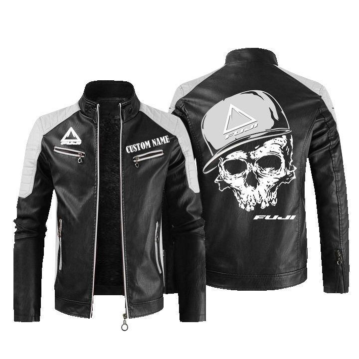 Custom Name Skull Design Fuji Bikes Leather Biker Jacket
