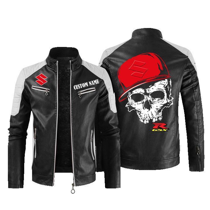 Custom Name Skull Design Gsx Leather Biker Jacket