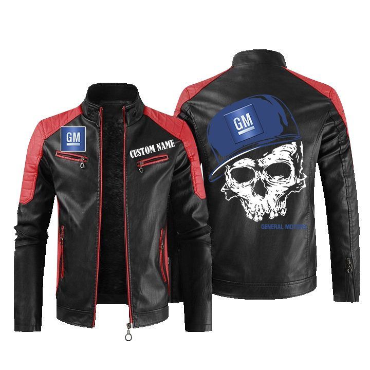 Custom Name Skull Design General Motors Leather Biker Jacket