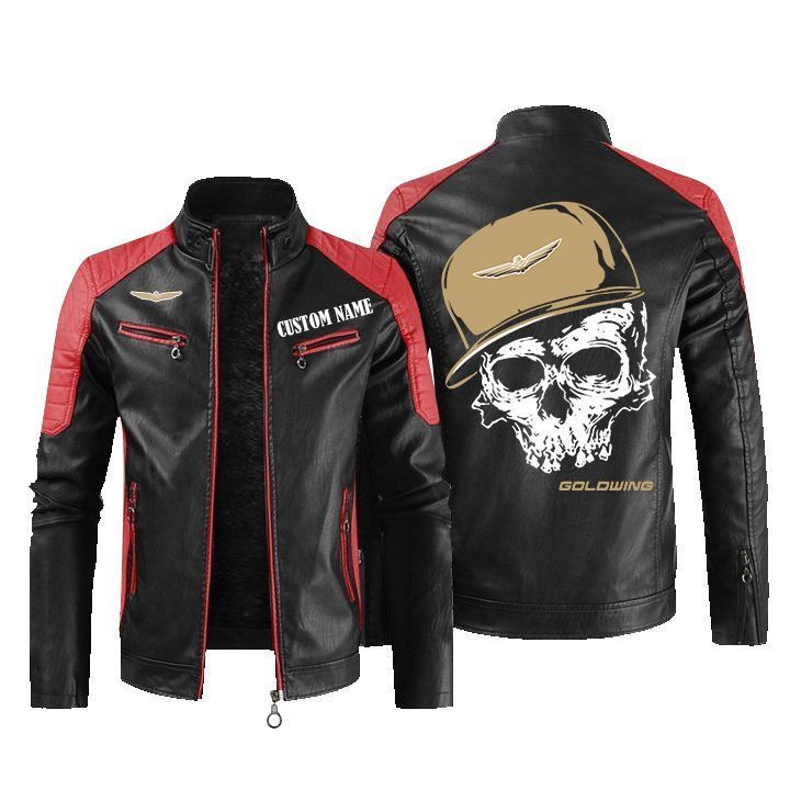 Custom Name Skull Design Goldwing Leather Biker Jacket