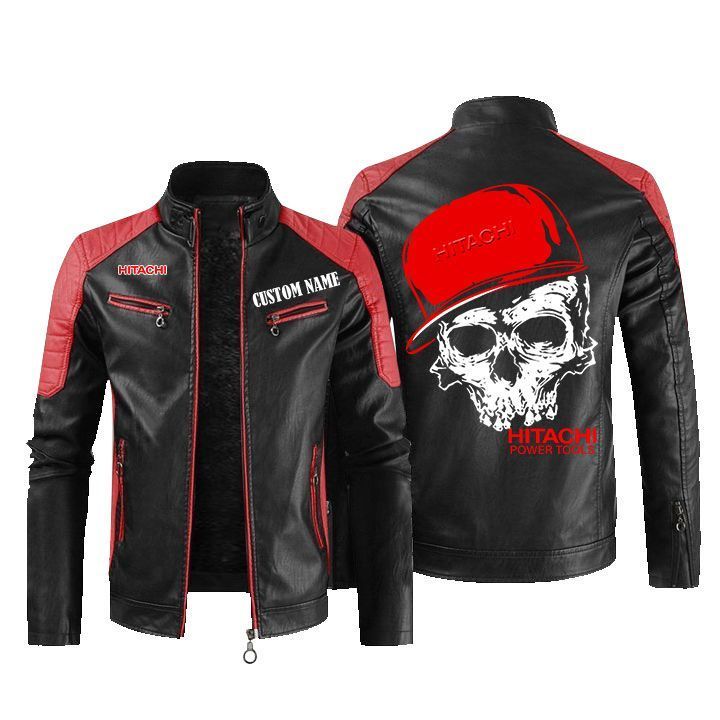 Custom Name Skull Design Hitachi Leather Biker Jacket