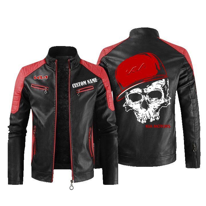 Custom Name Skull Design Kia Leather Biker Jacket